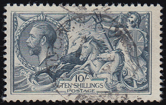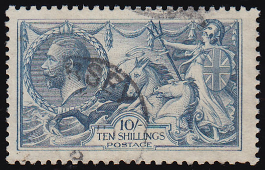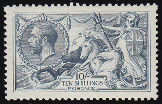 SG402 1913 Waterlow 10/- Indigo-blue, very fine, lightly mounted mint, original gum example.
