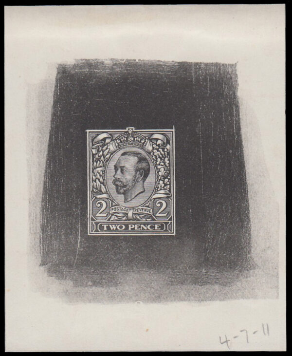 SG387var 1912 7d. trial of Eve’s Wreath design (small coinage head). Very fine example in black.