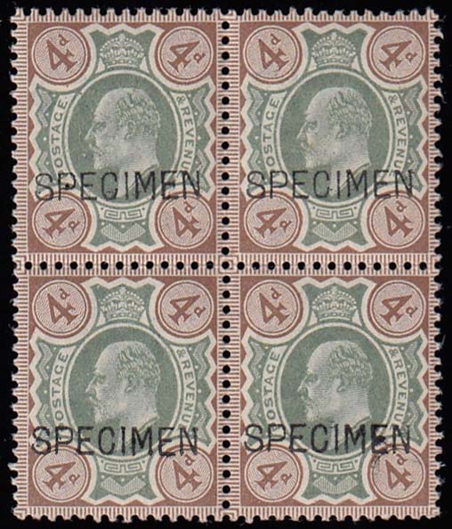 SG235var 1902 4d. Green and brown, overprinted SPECIMEN type 16.