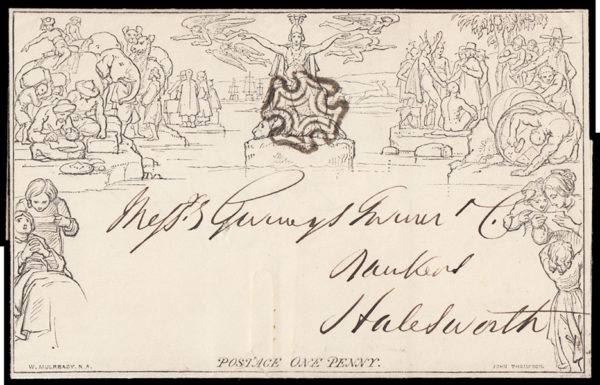 SGME1 1840 1d. Mulready Letter Sheet. Stereo “A1”. Forme 1. IPSWICH to HALESWORTH…