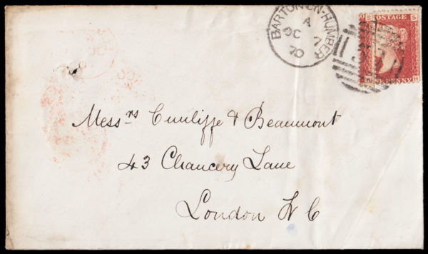 SG141 1877 Entire from Truninger & Co, London – stamps perfined T&Co – going to Paris.