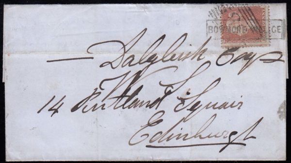 SG17/ SG42 1856 1d. cover to Edinburgh from Islay, double cancel of Scots Local BOWMORE VILLIGE.