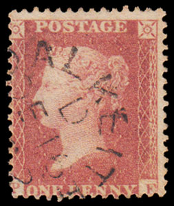 SG8 1852 1d. Red-brown Pl.152 (EH). Blue – PROBUS Handstamp.