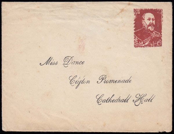 1902 Edward VII “stamp” in deep red-brown on printed envelope.