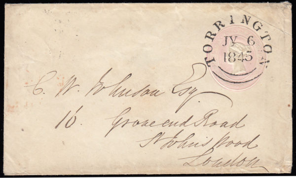 1845 1d. Pink envelope to St. John’s Wood, London.