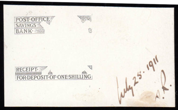 1911 Post Office Savings Bank stamp duty die proof.