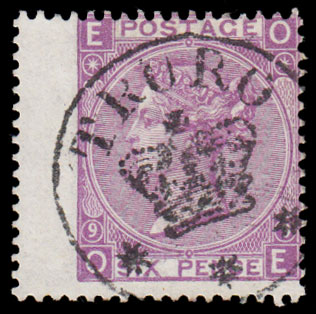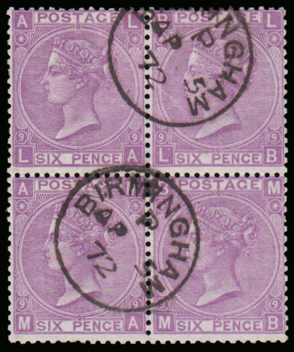 SG109 1870 6d. Mauve Pl.9 (LA – MB). Without Hyphen. Wmk. Spray.