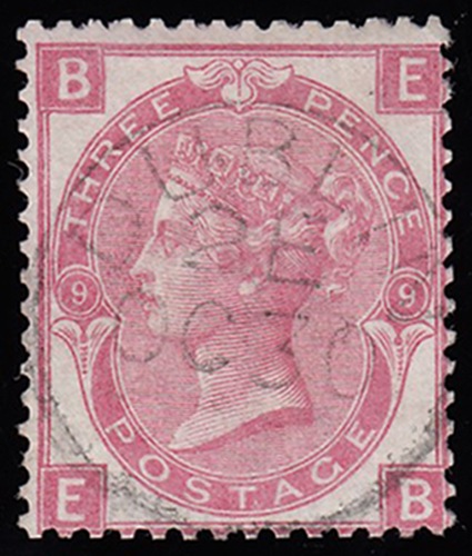 SG103 1872 3d. Rose, plate 9, EB. Exceptionally fine used, light Dublin cds- missing year slugs!
