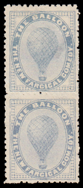 c.1881 “THE BALLOON – NEW FARCICAL COMEDY” Vertical pair of advertising stamp labels in the style of the 1d. Lilac.