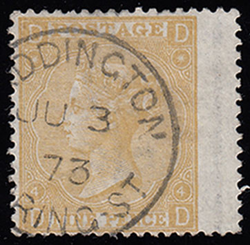 SG110 1867 9d. Straw, DD, very fine used. Paddington cds.