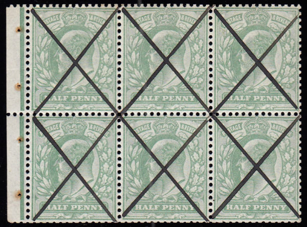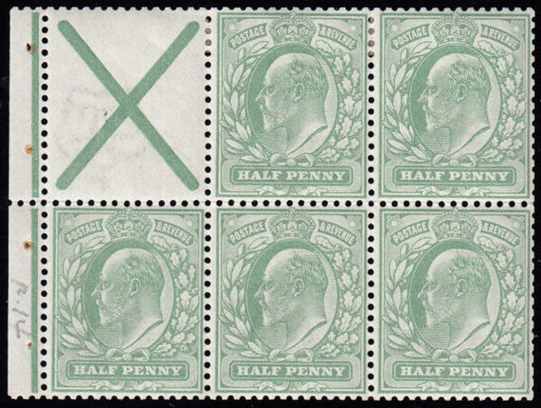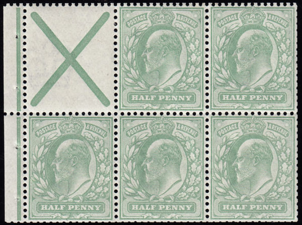 SG218b 1902 ½d. Pale yellowish green, booklet pane with St. Andrew’s Cross.