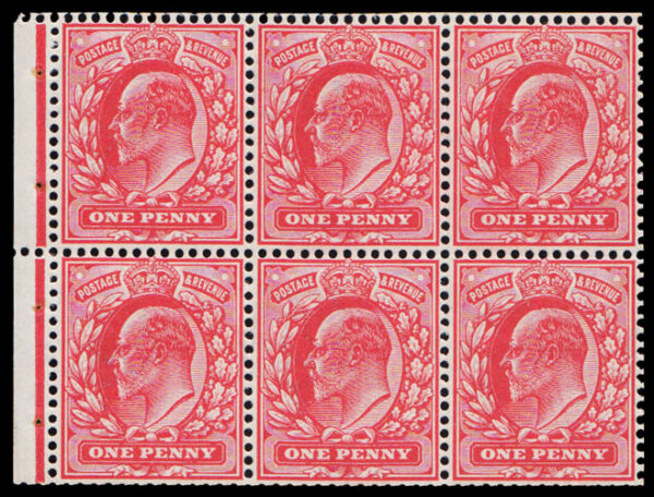 SG219a 1902 1d. Scarlet. D.L.R. Booklet Pane of Six. Unmounted o.g. with decent perfs. Cat. £325.
