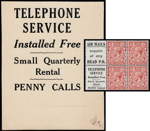 1925 Waterlow “Telephone Service” enlarged proof in black on cream paper.