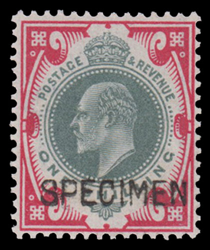 SG257 1902 1s. Dull Green and Carmine D.L.R. “SPECIMEN” Type 16.