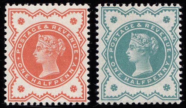 SG197Wi and SG213Wi 1887/ 1900 ½d. Vermilion and ½d. Blue green. INVERTED WATERMARK.