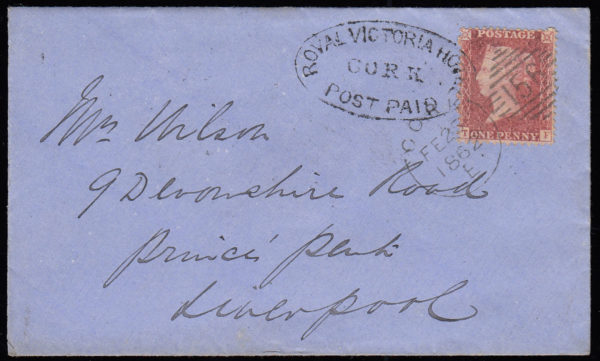 SG17/ 42 1862 1d. Star, TI, on neat envelope, Cork to Liverpool.