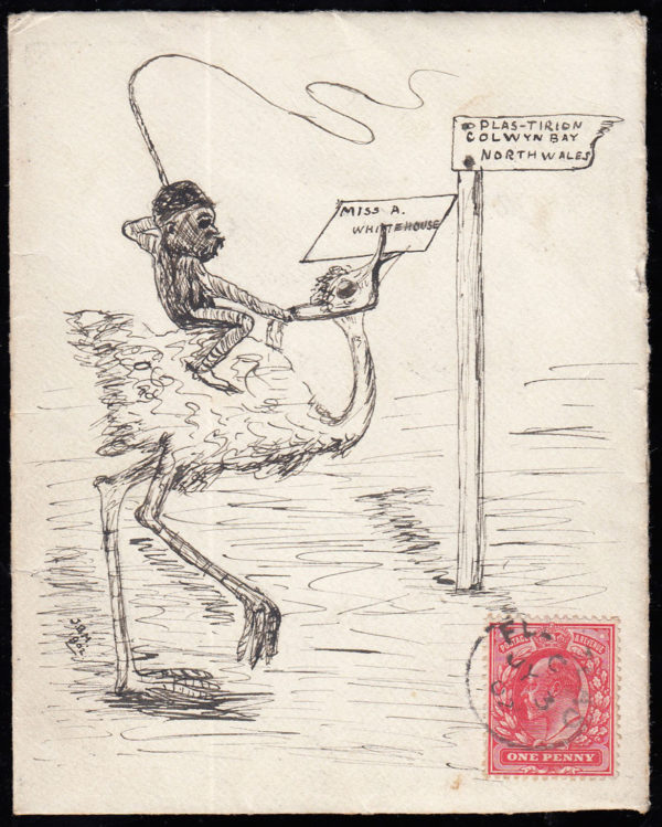 SG219 1902 1d. Scarlet on very fine drawn envelope of an Ostrich.