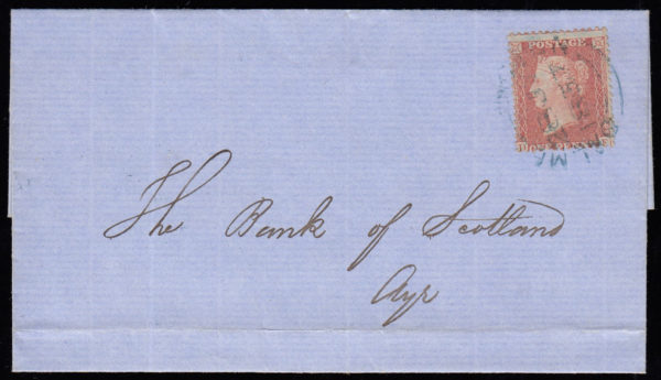 SG29 1856 1d. Red-brown, Die II, Alph III, LC14, plate 32, JC, on cover to Paisley.
