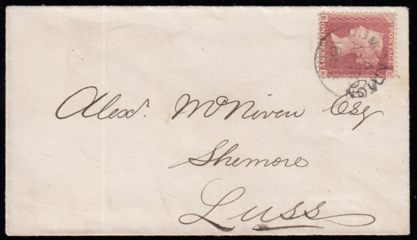 SG40 1863 1d. Pale-red, Die II, Alph III, LC14, plate 52, RK. Superb on cover to Luss (by Loch Lomond).