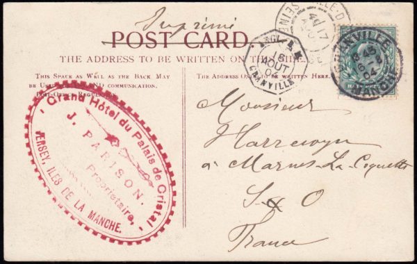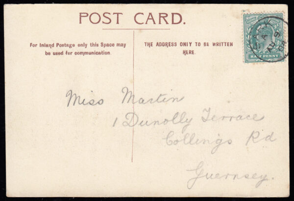 SG215 1904 ½d. Blue-green on picture post card of Bel-Air Hotel, Sark, Channel Islands.
