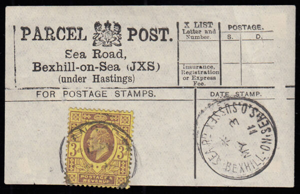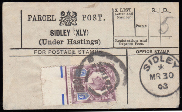 SG243 1903 SIDLEY (under Hastings) Parcel Post Label.