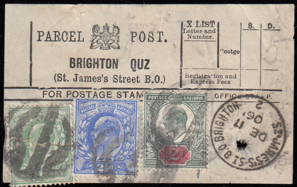 SG228 1906 Brighton (St. James’s Street BO) Parcel Label.