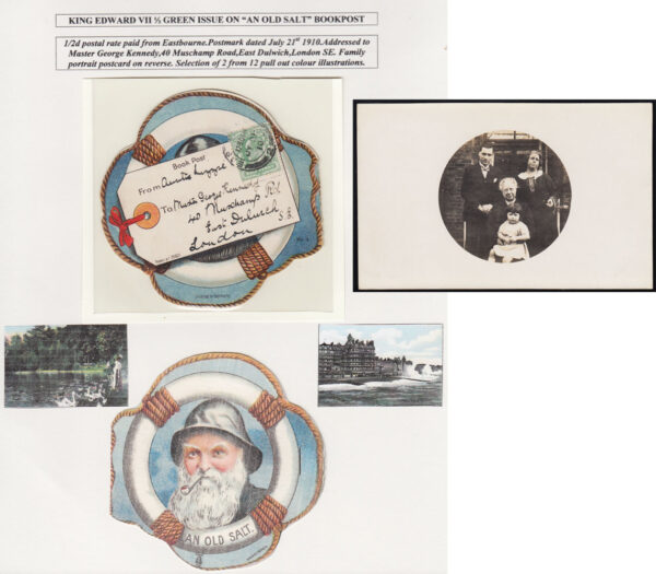 SG216 1909 Weymouth “crab” with fold out photos, sent from Bridport, dated OC.2.09.