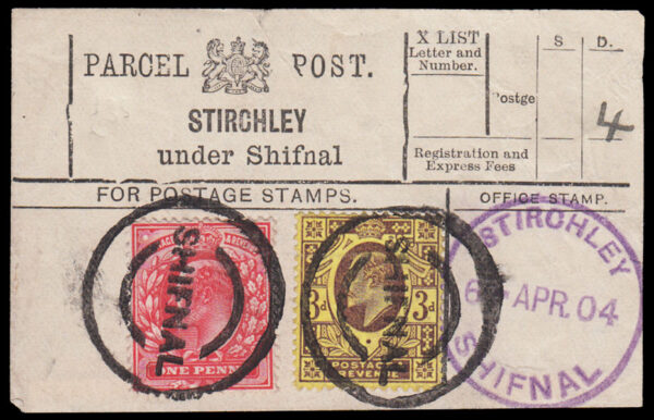 SG236 1902 Parcel Post label, Hammersmith with 4d. Edward 7th, dated MY.13.02.