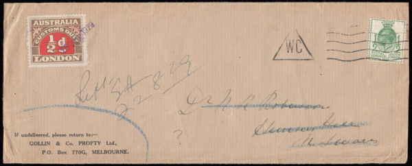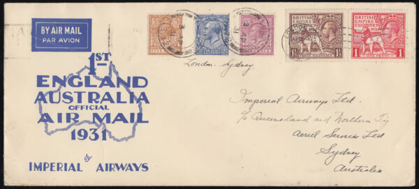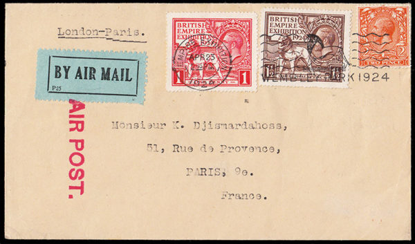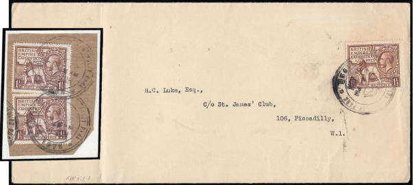 1924 Wembley with “PAID ½d” bulk posting handstamp in red. Scarce.
