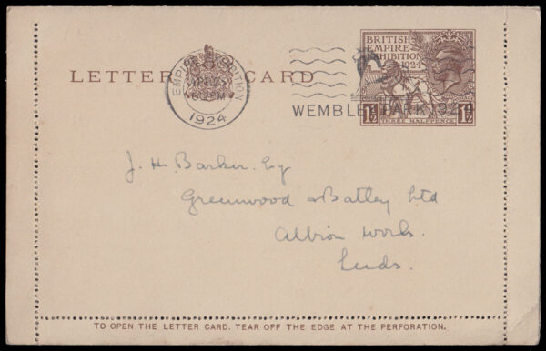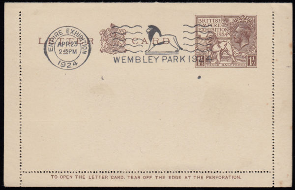 1924 Wembley Letter Card 1½d. unaddressed example.