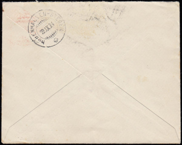 SG431 1924 1½d. Brown. British Empire Exhibition. Used with ½d. profile head to uprate postal stationery 1½d. B.E.E. envelope sent “BY AIR MAIL” to BERLIN.