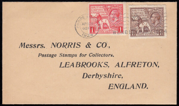 1924 Wembley 1½d. printed envelope used on the First Day of Issue