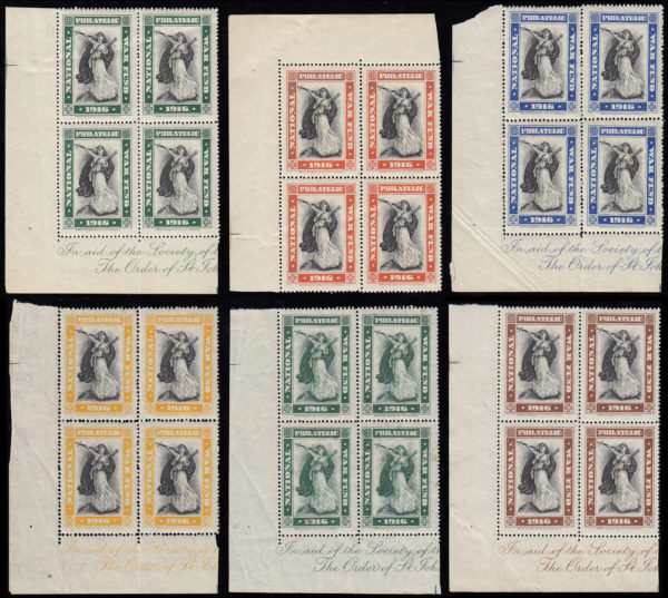 1916 National Philatelic War Fund sheetlets x6, in aid of the Red Cross and St. John.