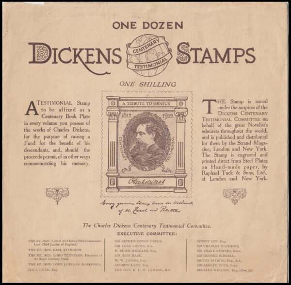 1912 Charles Dickens, 1d. Black labels in complete sheet of 12.