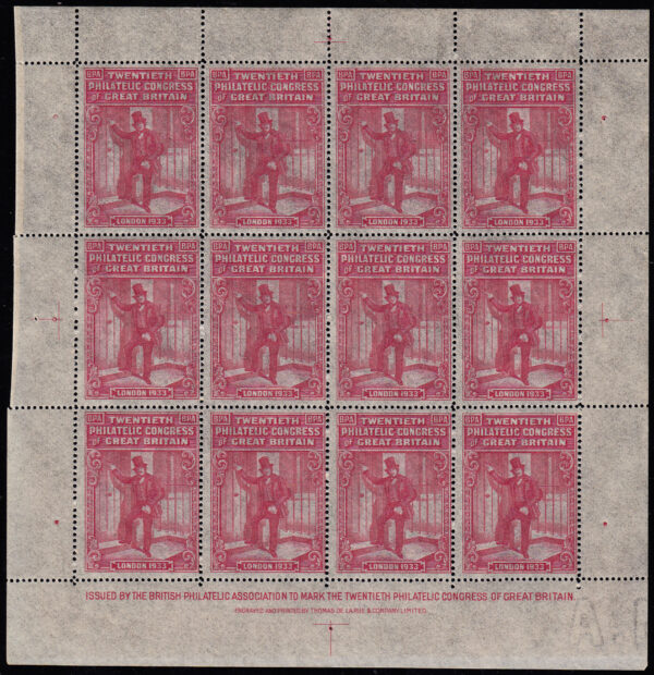 1933 BPA Souvenir sheet of 12 in Red on Pelure paper by DLR for the 20th Philatelic Congress of Great Britain.