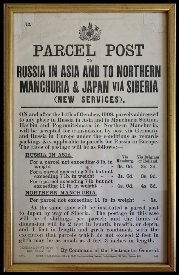 1908 Parcel Post to Russia, Manchuria and Japan.