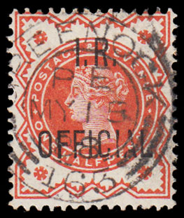 SGO13s 1888 ½d. Vermilion I.R. Official “cancelled” type 14.