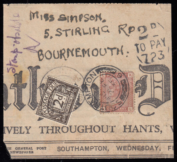 SG166 1925 Part newspaper with 1d. venetian-red from Southampton to Bournemouth.