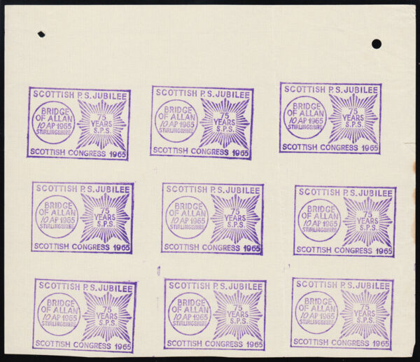 Post Office Archives. 1965 Scottish Philatelic Society Jubilee – 75 Years S.P.S.