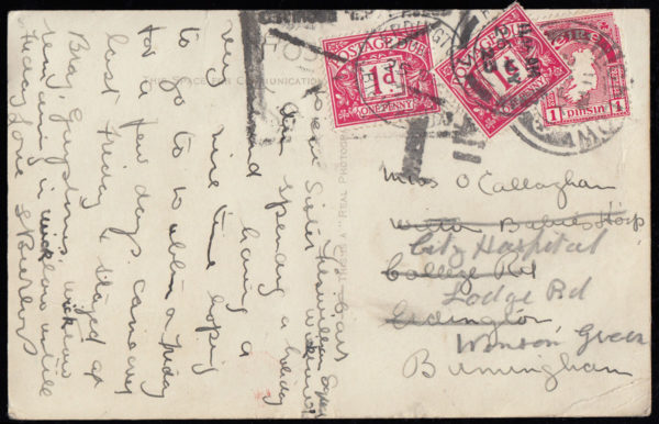 SGD2 1923 Postcard from Wicklow, Ireland to Birmingham.