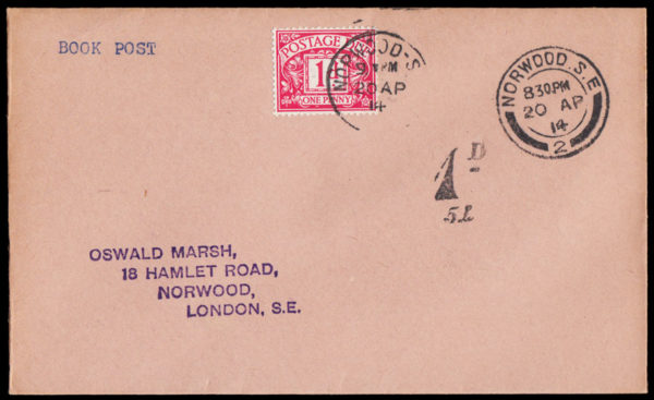D1/8a 1914 – 22 ½d. – 1s. Simple Cypher Postage Dues.