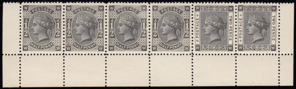 1880 Tender Essay – for the Black ½d. (x 4) and 2d. (x 2) Perkins Bacon Surface Printed Essays Engraved by W Ridgeway.