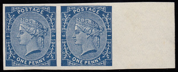 1879 Tender Essays. Perkins Bacon & Co. Superb marginal pair in Indigo.