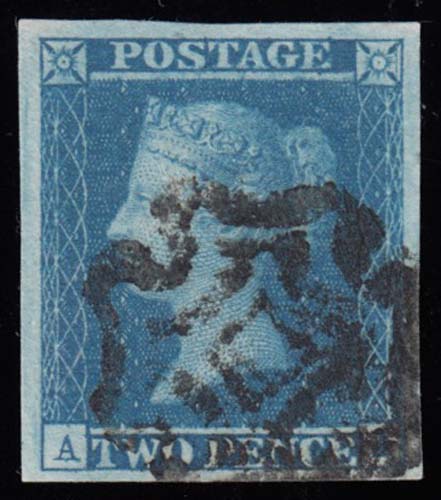 SG14 1849 2d. Blue, plate 4, HD. Superb used example, crisp numeral cancels leaving clear profile.