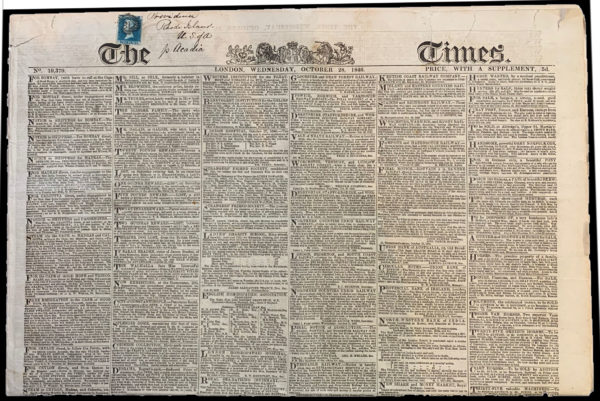SG14 1846 2d. Blue, plate 3, FC, paying newspaper rate to Rhode Island, USA