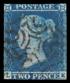 SG14 1841 2d. Blue Pl.3 (LD – LE). “LE” State 1.
