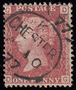 SG43 1864 1d. Rose-red, plate 184, DG. Superb cds used, Chester 1877.