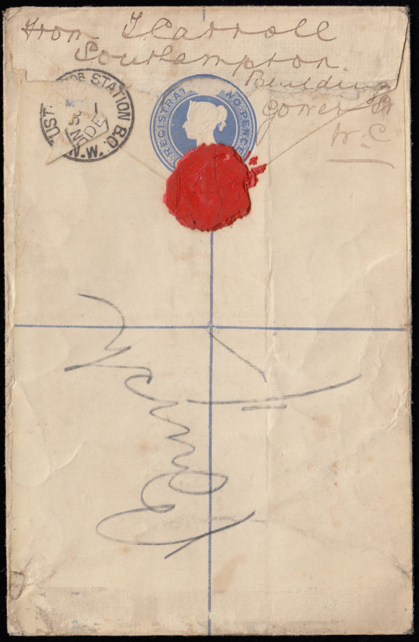 SG187 1885 Foldout Christmas card in the form of an imitation envelope with an imitation “Christmas” wax seal.