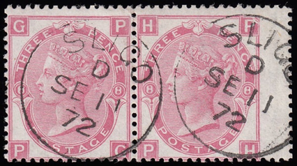 SG103 1867 3d. Rose plate 8, LJ – LK pair with Preston cds’s, OC.9.72.