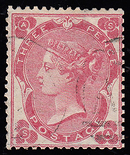 SG76 1862/ 64 3d. Bright carmine rose, SA. Very fine lightly used example.